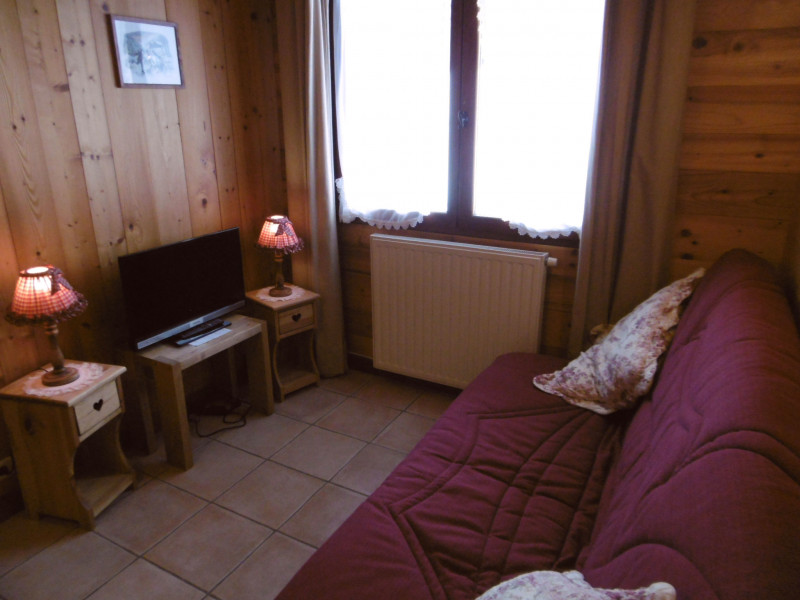 Dans un chalet typiquement savoyard, une chambre d'hôtes pour un couple, avec un salon-télévision... dans l'ambiance insolite et magique de la "Maison des Contes de Fées"...